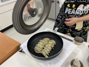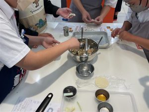 餃子を作ったことのない生徒も 先輩や初めて会うお友達と協力しながら作業していました!